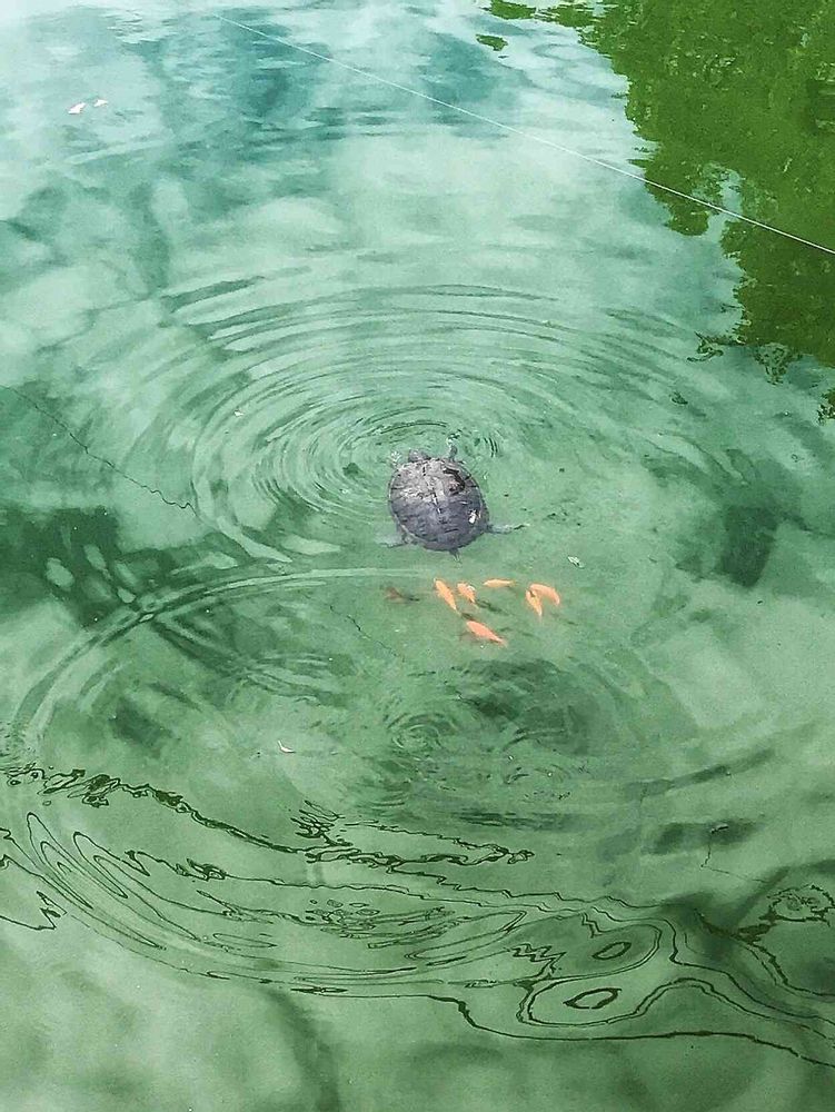 亀が金魚に追いかけられてた😳ナンデヤネン