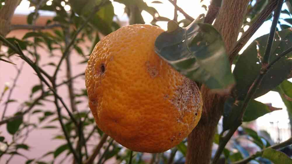 さんざん蝶々の幼虫に悩まされ、なのにひとつも実をつけることなく庭に鎮座。