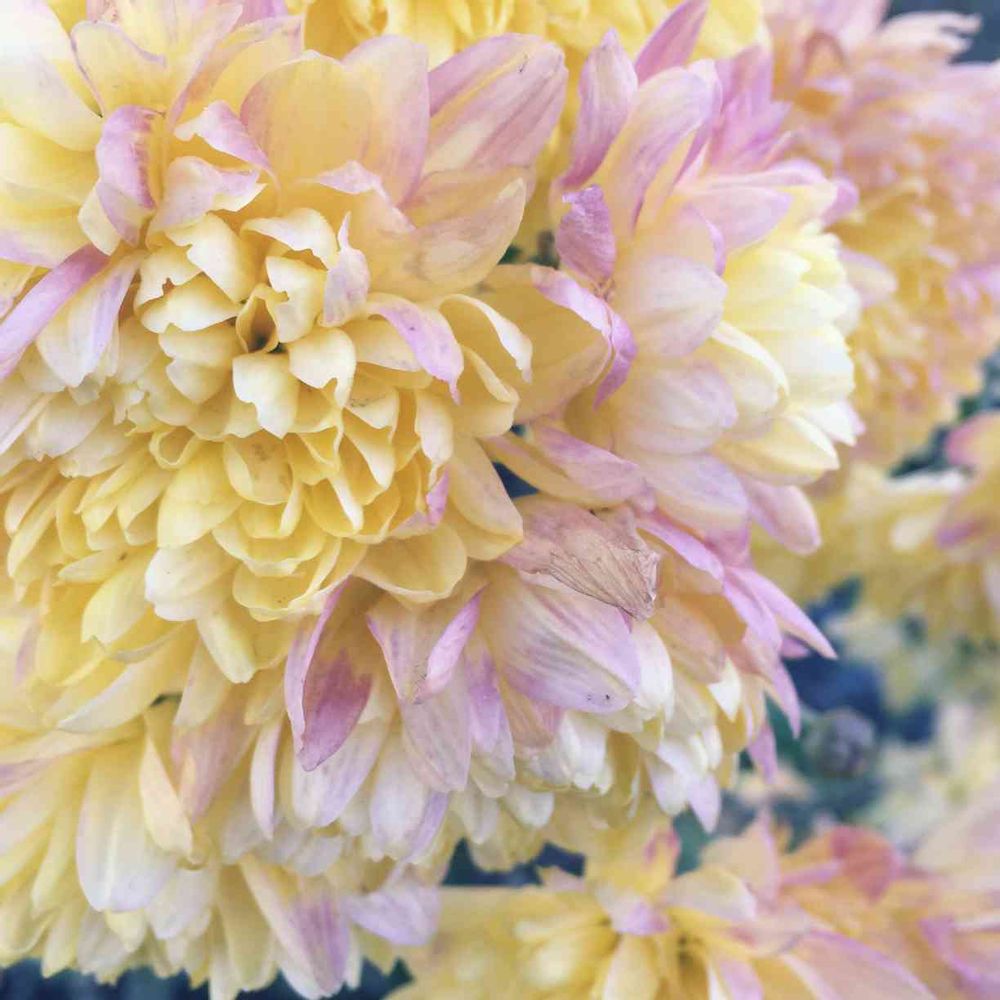 黄色の菊の花びらが うっすらピンクに染まって 可愛い〜のです♪