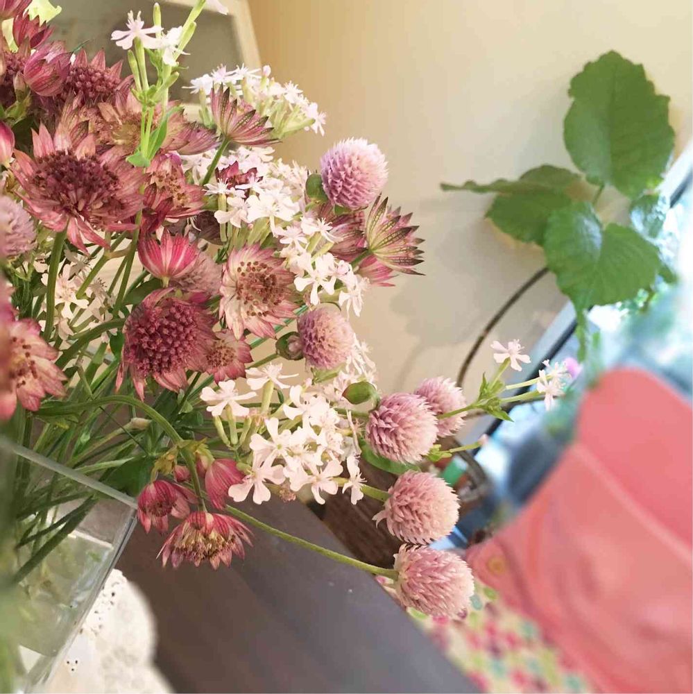 こちらはピンクのアストランティアでまとめたもの。