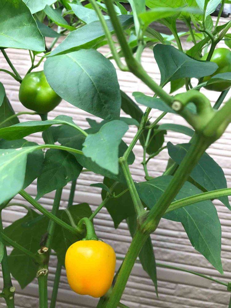 ミニパプリカのらんらん、緑の時から10個以上収穫してますが、黄色い完熟パプリカも採れ始めてます。