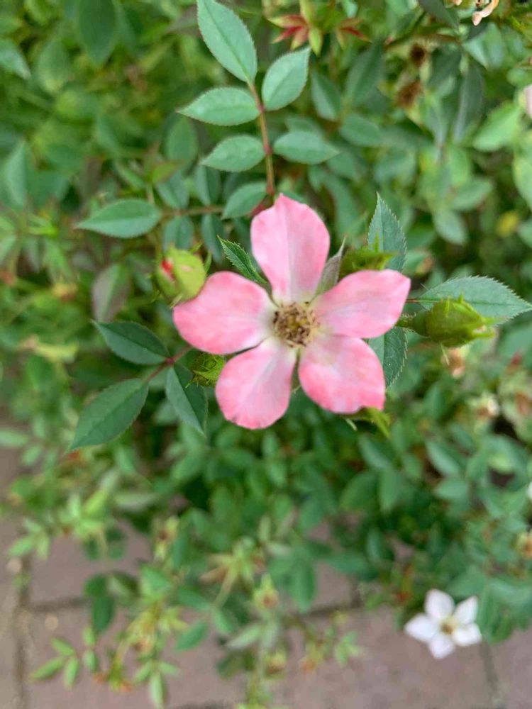 可憐で小さい、桜のような一重の薔薇です。