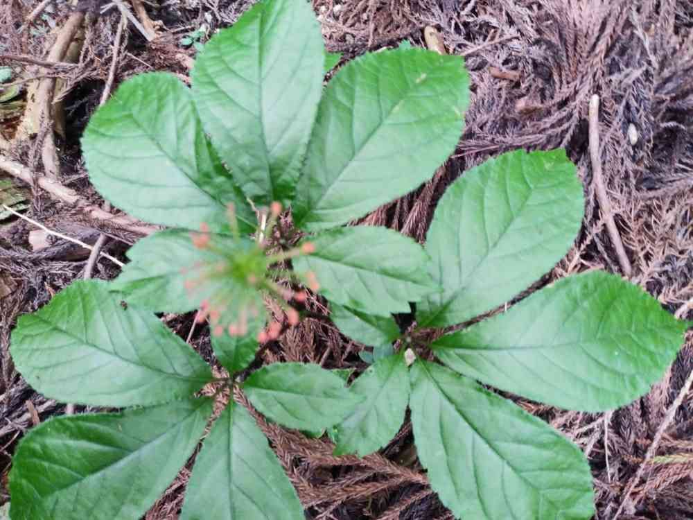 これはトチバニンジンの葉っぱみたいですね!私の7月19日のpicにありますので、見てみて下さい。赤い実がなってます(^∇^)