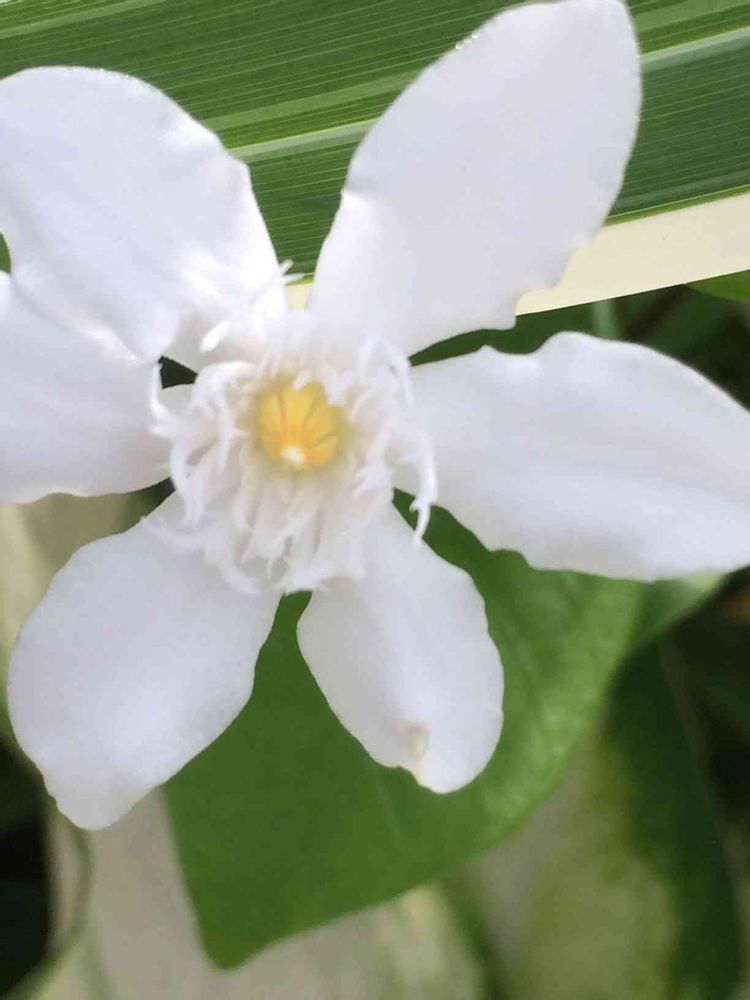 何の植物ですかね〜私もこの花は見たことなくて…つる植物っぽい感じもしますが。。分かると良いですねぇ。