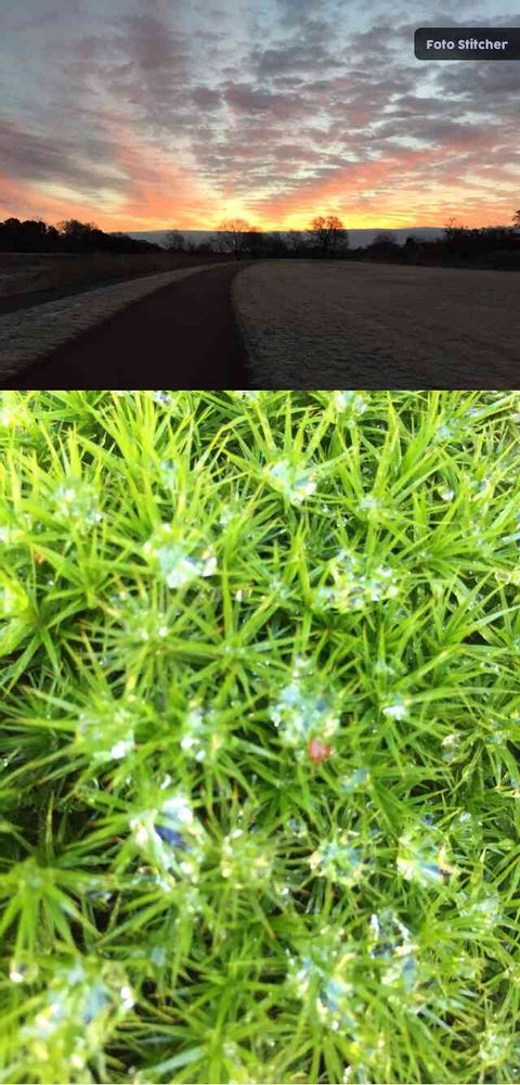 下:散歩から帰って庭の点検したらスギ苔の上に朝露がキラキラと✨