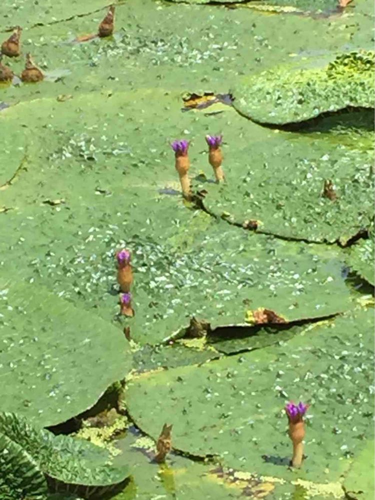 オニバスの花が葉🍀を突き破って💜咲いてます