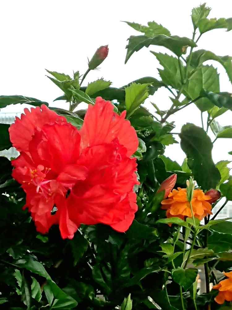 バルコニー/ベランダ,ハイビスカス レッドフラミンゴ,ハイビスカス咲きましたの投稿画像
