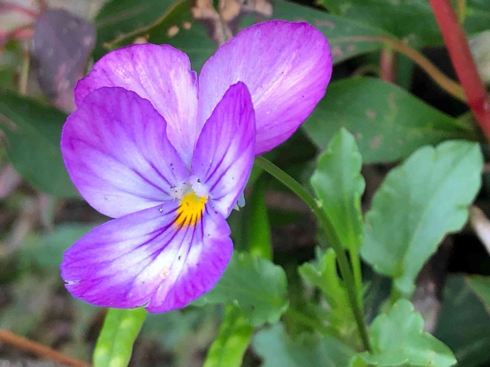日光市明神の石塀に咲いていた、種類は解りませんが、今時?スミレやパンジーの仲間と思われる、美しいうす紫色の花🌸