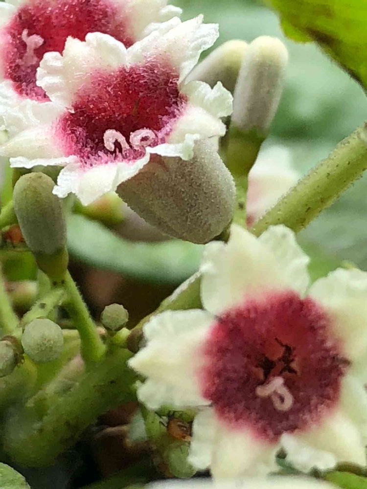 日光市今市運動公園体育センターの、サツキの垣根に絡まり、たくさんのつぼみと、とても可愛い💕😍らしい花を咲かせる、名前が似合わない、ヘクソカズラの花❗️
