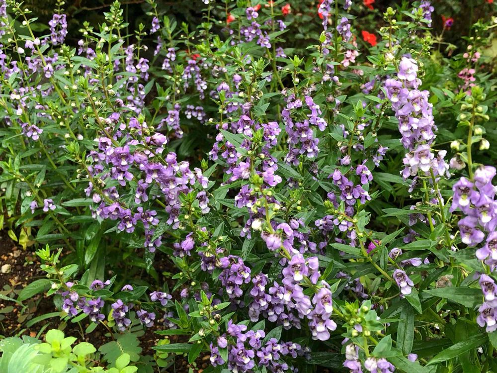 種蒔きで育てたアンゲロニアが咲きそろいました。もうすっかり夏の花の定番になりましたネ。