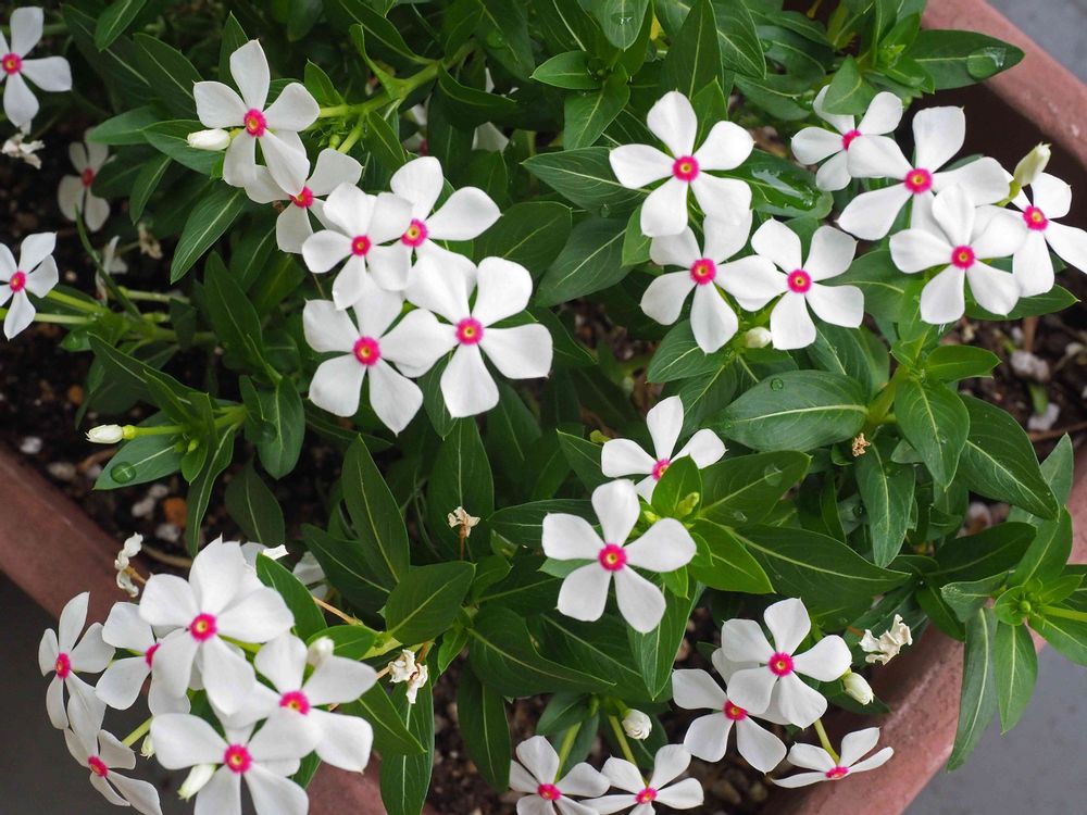 清純な感じで、爽やかな笑顔を見せるニチニチソウ、可愛いですね