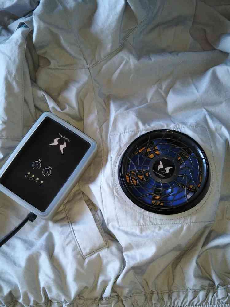 作業着に左右ファンがあるので扇風機にあたりながら仕事できるの〜コレ考えた人はどれだけの作業員さんから感謝されてるでしょうね🥰