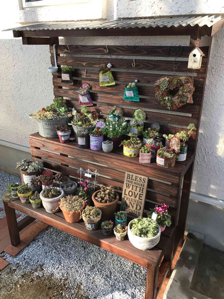 すごい、すご〜い( ᵒ̴̶̷͈ ▿ ᵒ̴̶̷͈ )立派な多肉棚!!