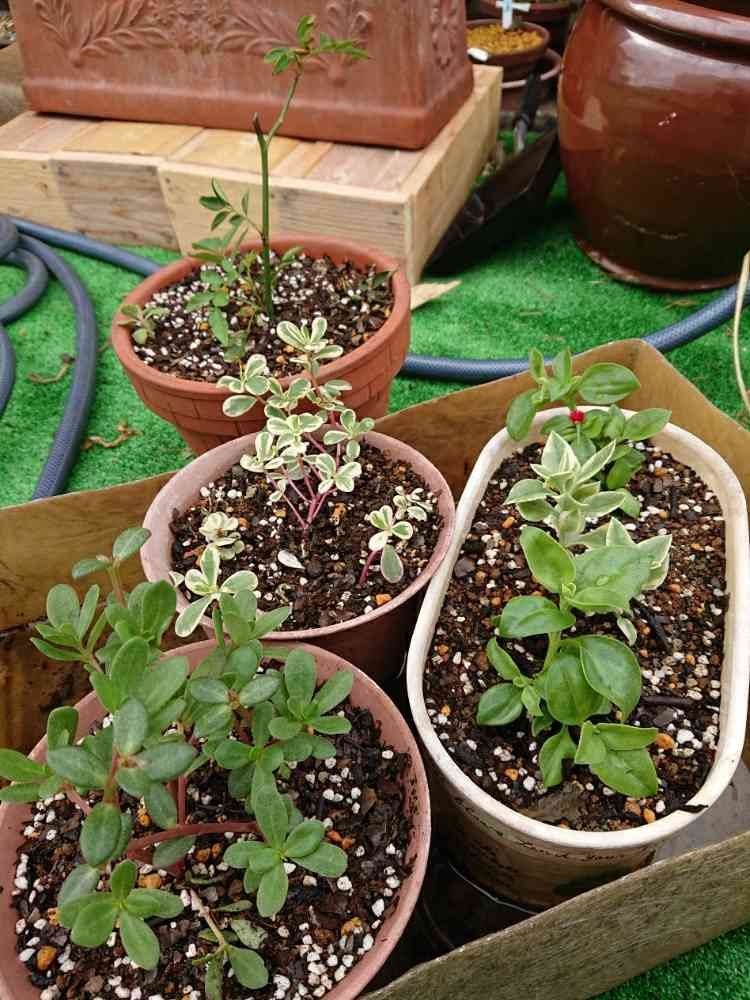 オマケでもらった子や頂いた子達を挿し芽の土から鉢あげしてあげました。どんどん増えてね✨
