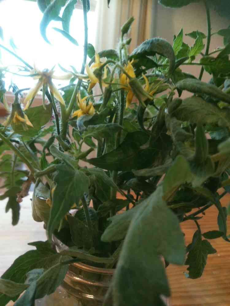 台風の前に 沢山収穫し 枯れ始めたトマトを 切りました。