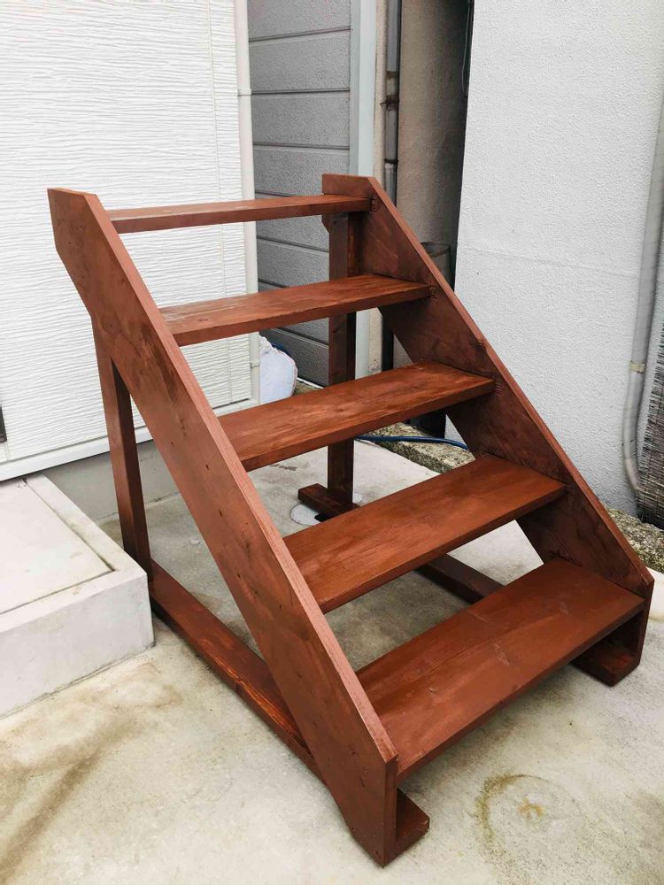 ノミで削って内側から合わせてビスで止めてますよ。最初と最後の段は差し込んでビス止めです。