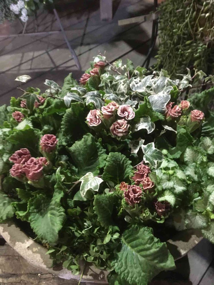 鉢がベージュなのでカラーリーフはシルバーのラミウムとアイビーをプラスしてみましたっ。
