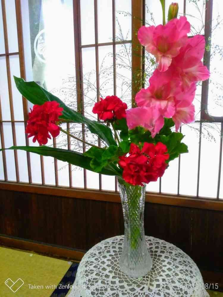 庭に咲くお花で投げ入れをしてみました。和風の家なのでちょっとアンバランス※ でも部屋が明るくなりました。😆
