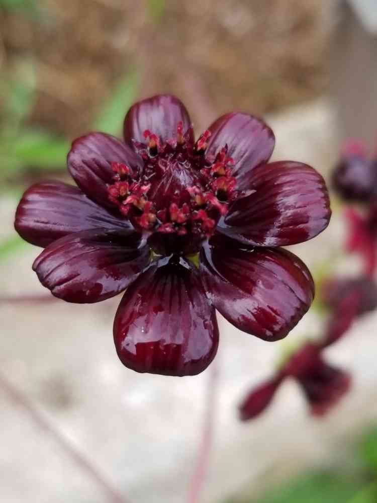☂️に濡れたチョコレートコスモスはチョコレート細工みたいです🙂