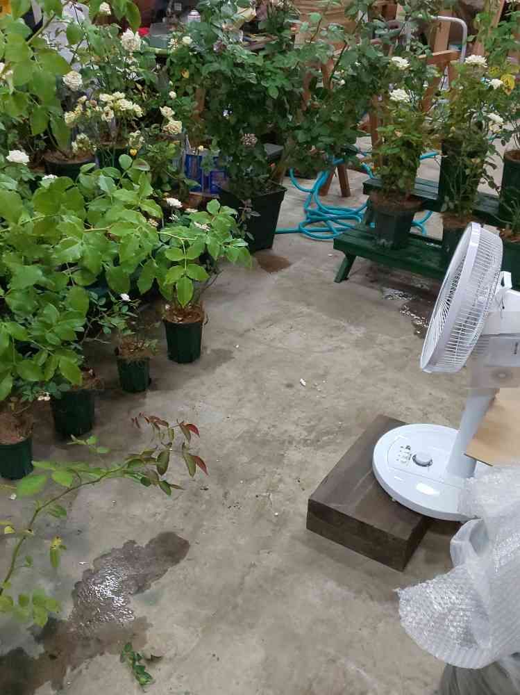 我が家のバラたちも台風に備えて小屋の中に避難させたんですが、窓全開でも全然風が入ってこない…風通しが悪くて暑い…