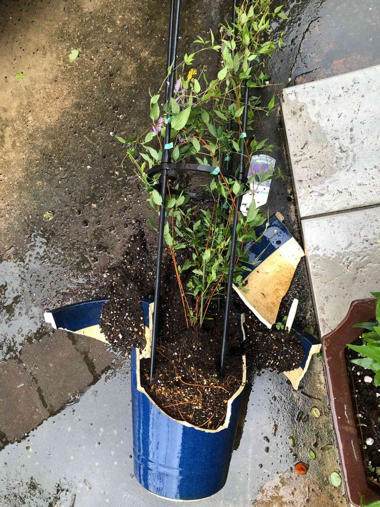 鉢はダメになったけど、クレマチス はそんなに傷んでなかったよ。😊