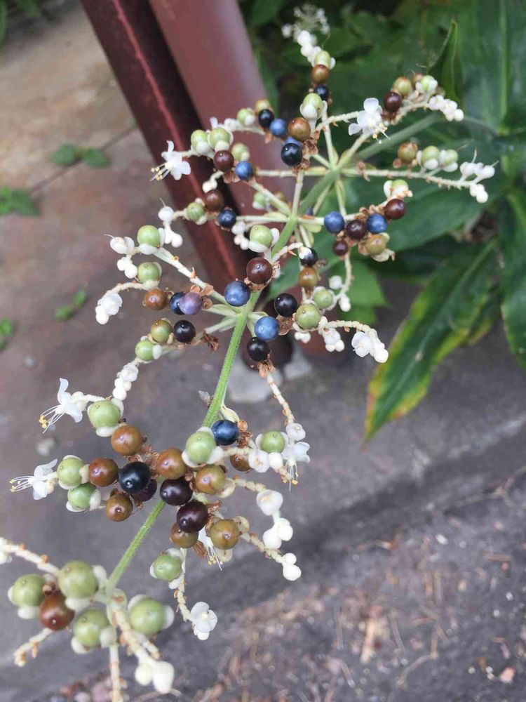 実は熟すほど、緑→茶→青→黒と色が変わるそうです。