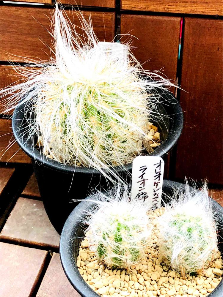 これは赤い刺と白く長い毛が特徴のライオン錦です。はみさんの素敵な長い毛ですね。朱色っぽい硬い棘が特徴ですが、触れますか?