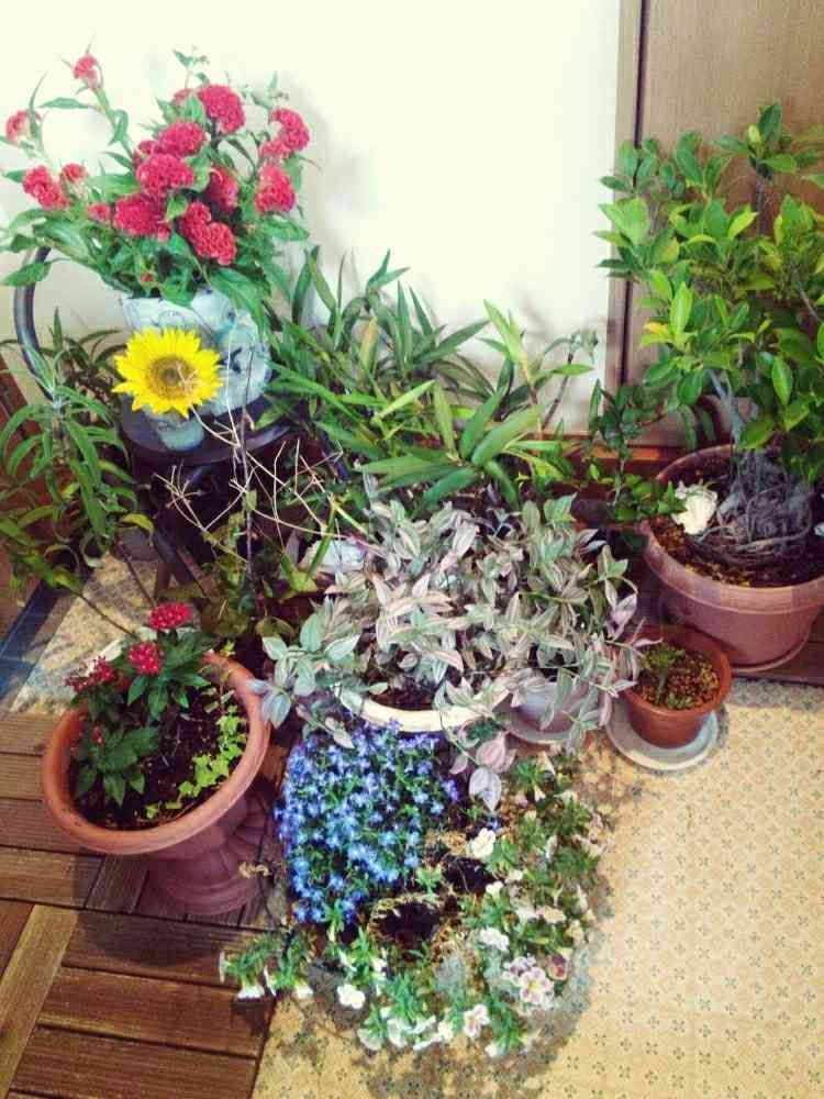 植物たちも疲労困憊の様子だったので玄関内にお迎えしました。