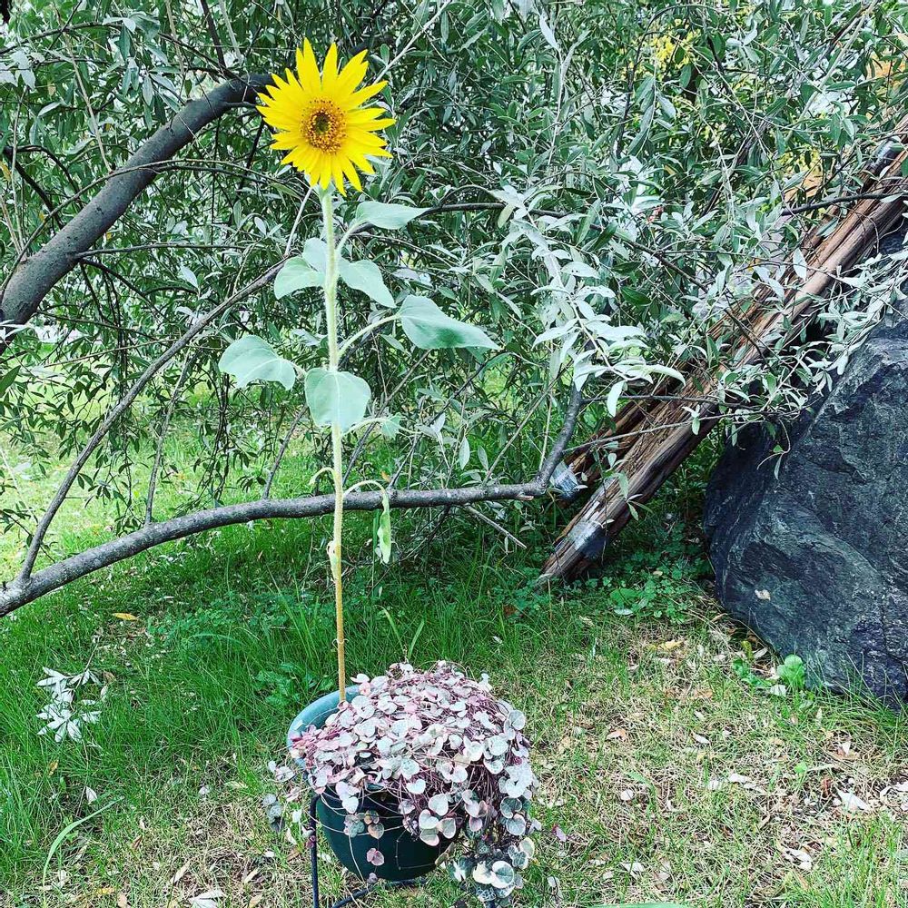 ハートカズラの鉢にタネを偶然に落としたのか⁉️ヒマワリが芽をだしてそして咲きました✨