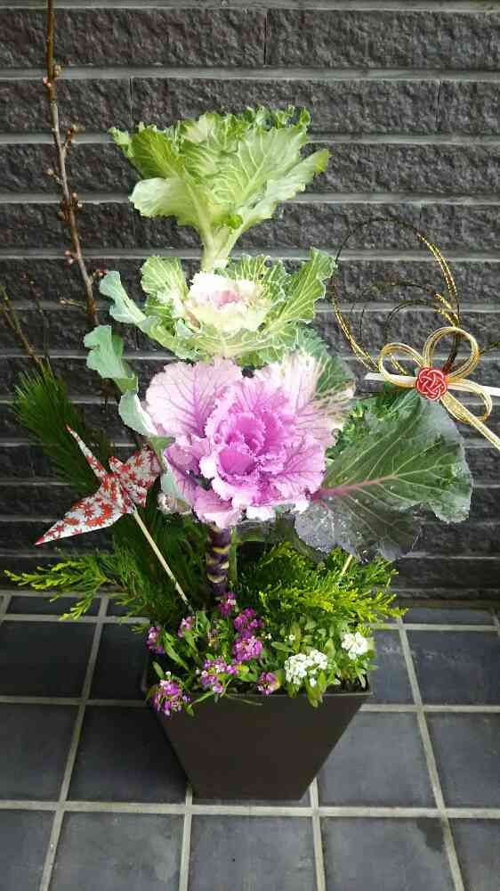 ツインPeachさんの玄関,葉牡丹の寄せ植え,お正月飾りの投稿画像