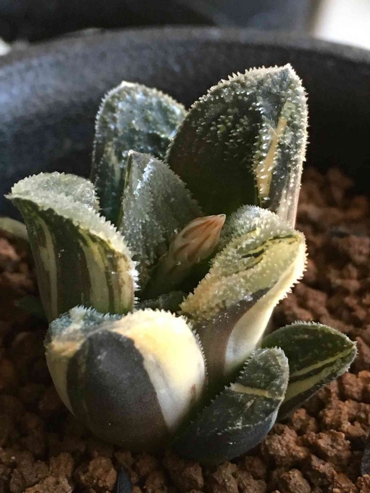 こんなに小さいのに花芽が上がって来ました💕錦は花芽のうちから蕾の色が違うんですね😳