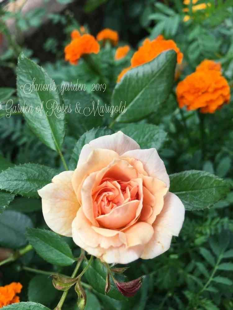 初めて育てたバラと初めて種から育てたマリーゴールドのコラボ🏵️