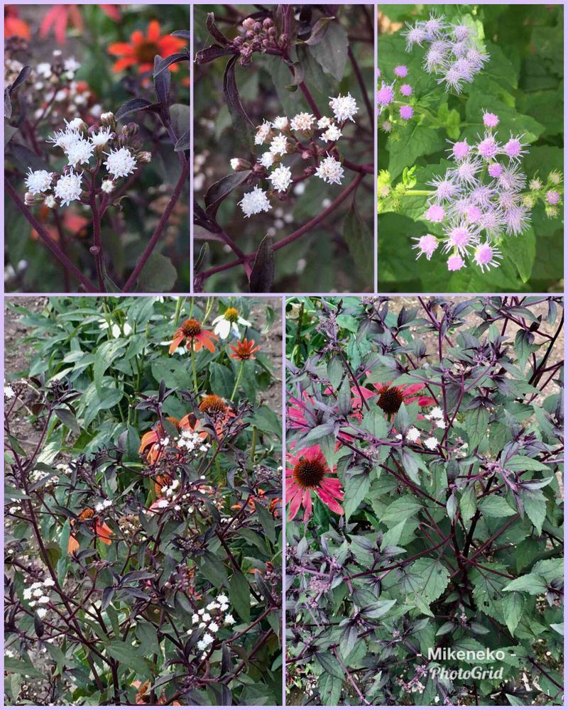 上段右は、花壇に咲く青色のユーパトリウム‘セレスチナム’で、別名青色フジバカマと呼ばれてます。対比のために載せてみました💠。