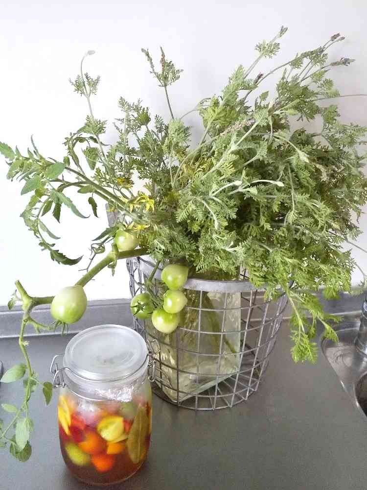 ワサワサになったラベンダーと青いトマト😊部屋中心地良い香り☺️