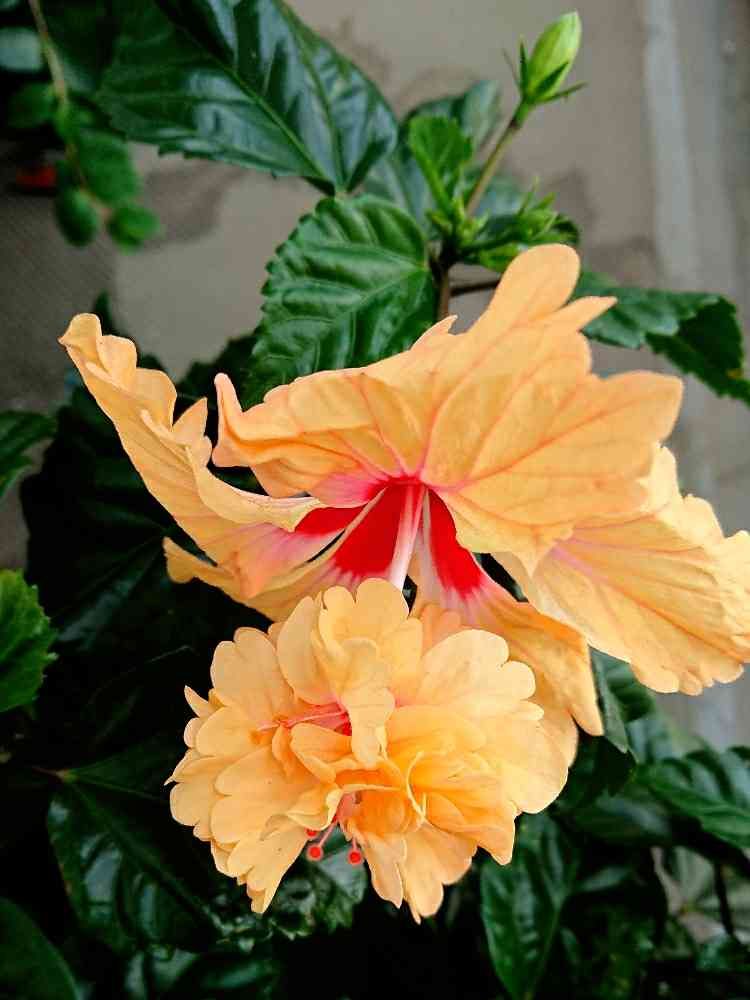 バルコニー/ベランダ,ハイビスカス オレンジフラミンゴ,ハイビスカス咲きましたの投稿画像