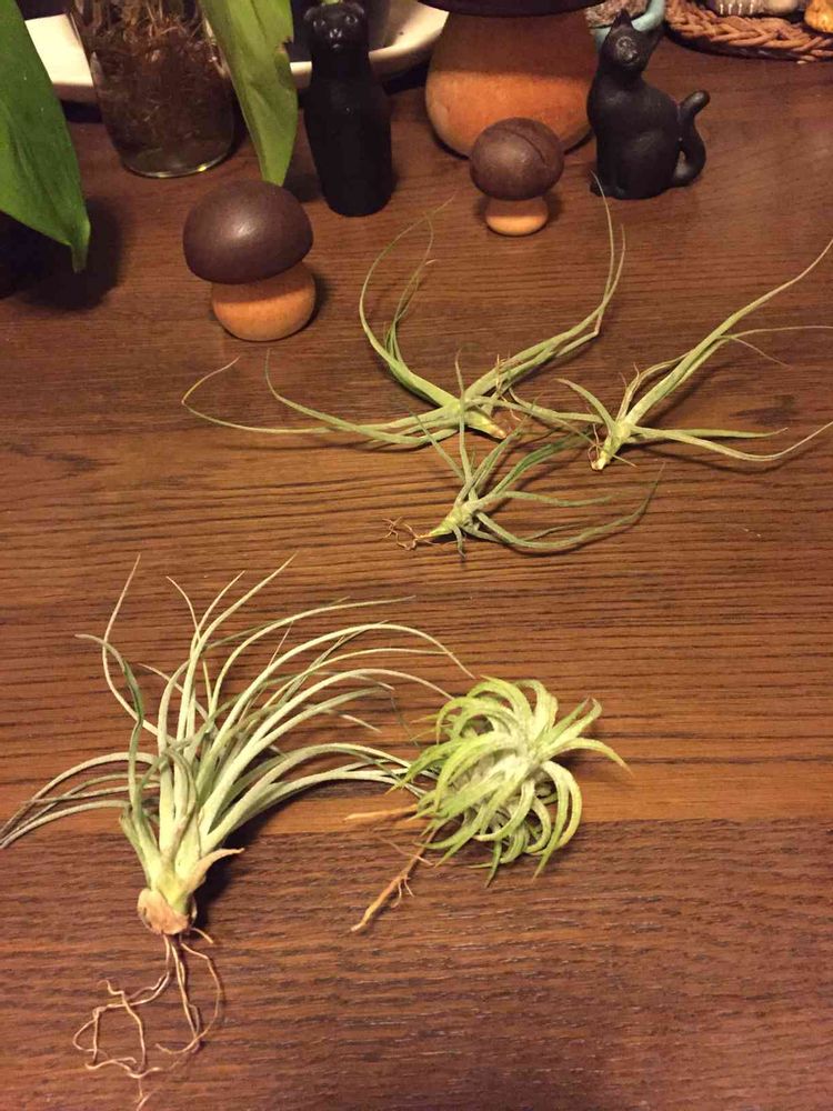 みなさんに感化されて、エアープランツ買ったんです…。生きのいいエアープランツなんです…。 そのはずなんです!奥の3つはダイソーの。手前2つはお花屋さんの。値段次第なかんじしますね!
