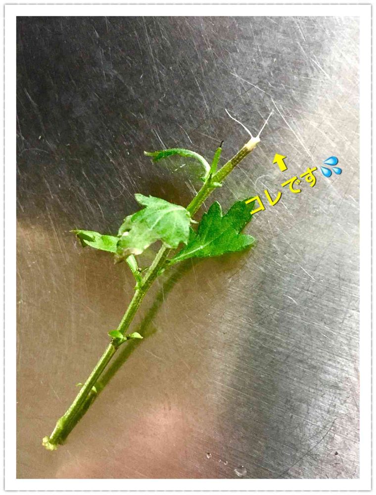 よーく見ると、茎の下の部分がお水に浸かっていなくて、それで苦しくて上から根っこ…?