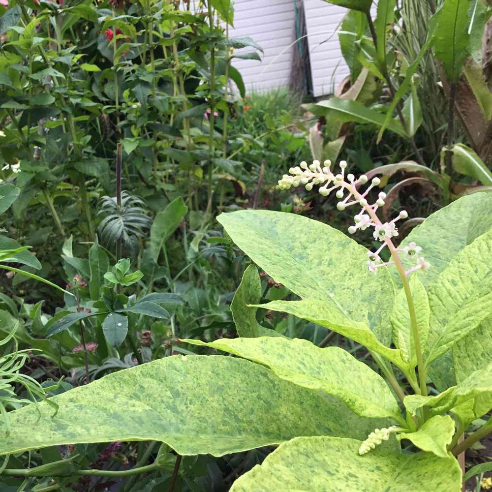斑入りヨウシュヤマゴボウ 咲いてきました。かわいいな〜。
