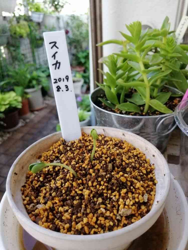 じゃじゃ~ん、スイカ🍉の種から🌱芽が…😁
