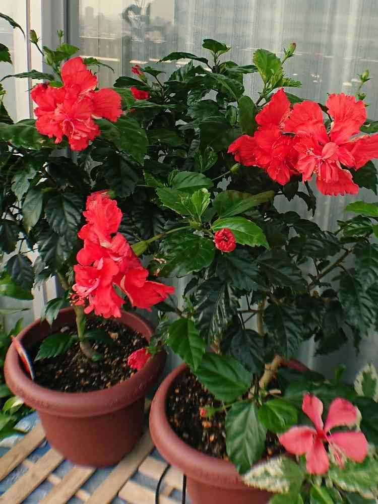 バルコニー/ベランダ,ハイビスカス レッドフラミンゴ,ハイビスカス スノーフレークの投稿画像