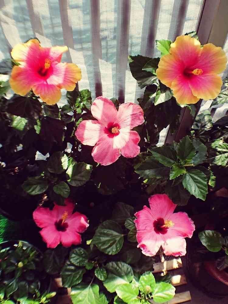 m_Monsterさんのバルコニー/ベランダ,ハイビスカス ミセスユミ,ハイビスカス ハワイアン ピンクレディーの投稿画像