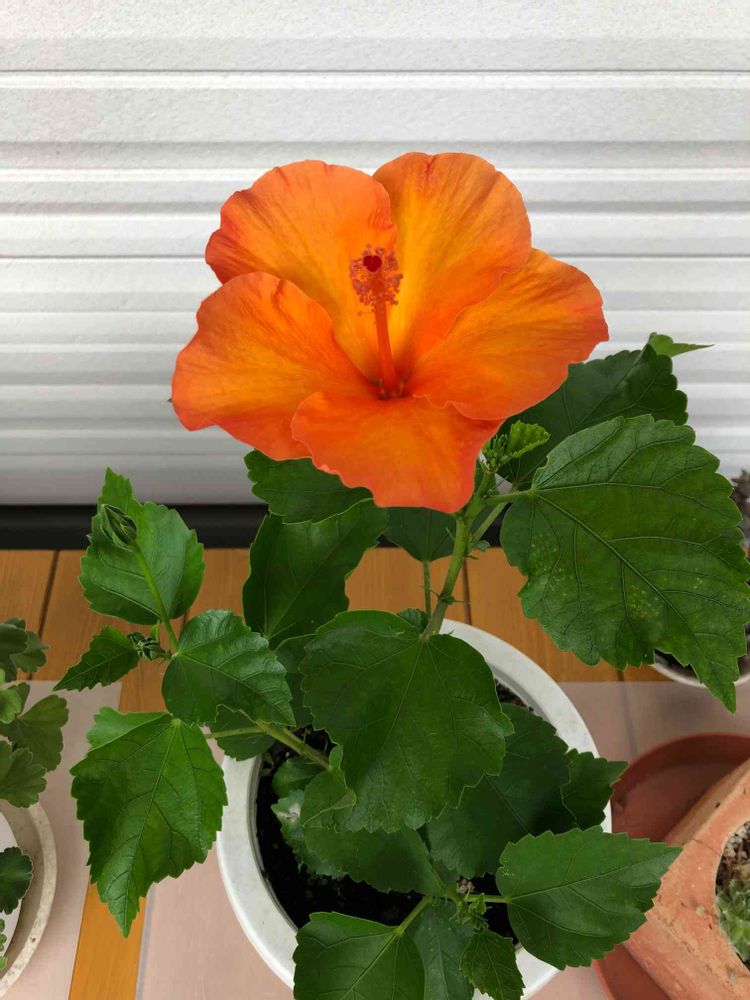 オレンジのハイビスカス🌺は、私の知り合いの家にはないし、あまり見かけないなぁ😃 元気もらうね💪