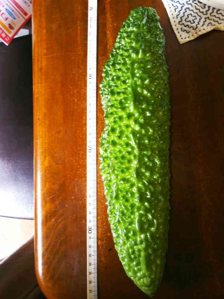 長さ35センチ、650グラムの超ビッグサイズのゴーヤが採れました😳