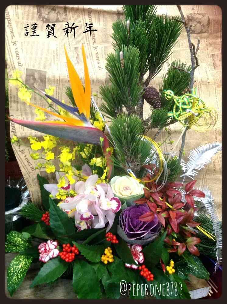 えっこさん💞こちらのお正月アレンジとっても素敵💞ストレリチアを使って酉の干支をイメージして水引で華やかに彩ったりですごく豪華よ❤❤