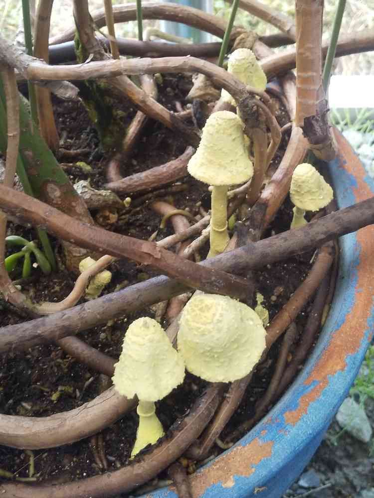 モンステラの根元にベルっぽい可愛いキノコ発見。