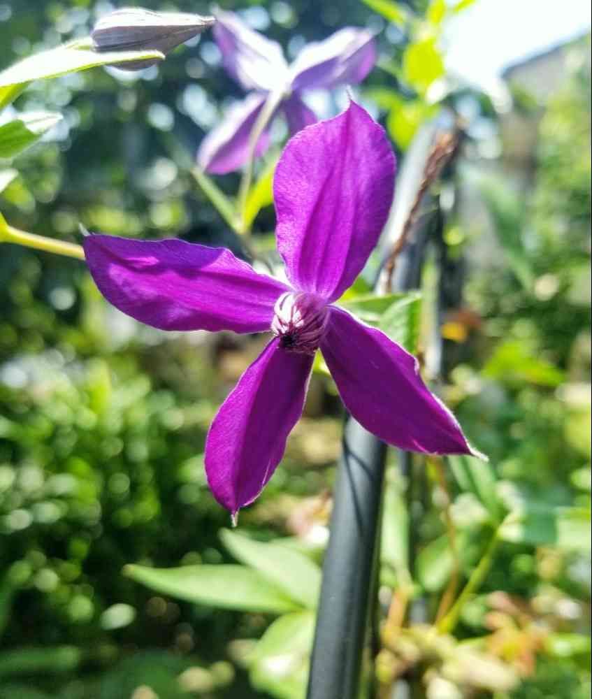 クレマチスです。春は花びらが5~6枚でしたが夏は4枚になっちゃうのかな?春よりサイズも小さくなりましたが可愛く咲いていますよ。この子は形も色もお気に入りなので大事に育てたいと思います。