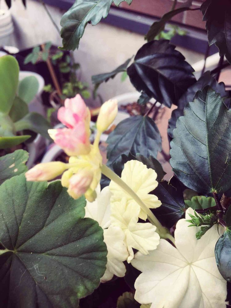 同じく暑さで白化気味のゼラニウムさんです‥💦 この子以前投稿したチョコレート色の葉っぱの子なんですよー😅