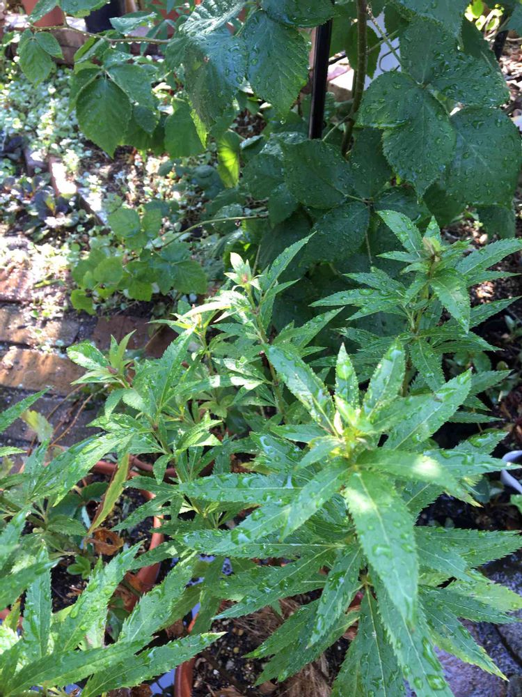 ときどき水枯れして葉っぱが落ちてしまいました。このまま秋まで持ちこたえて何とか花が咲くといいんだけど。昨年購入した時は小さな株でしたが、とても大きくなりました。フジバカマの香りとても楽しみにしているところです。💕😄
