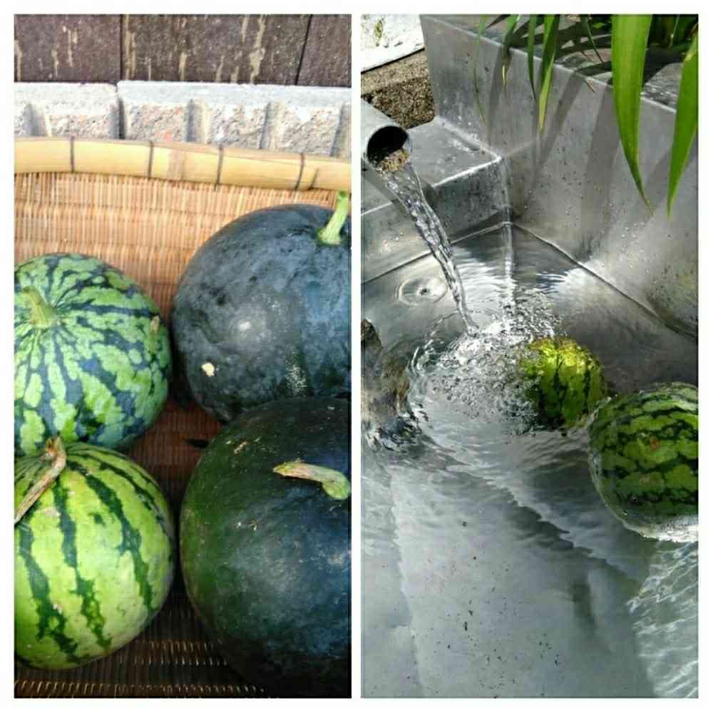 水場で冷した(✽ ゚д゚ ✽)世が世なれば大玉であった筈のウラ成の🍉初物をいただきやす。