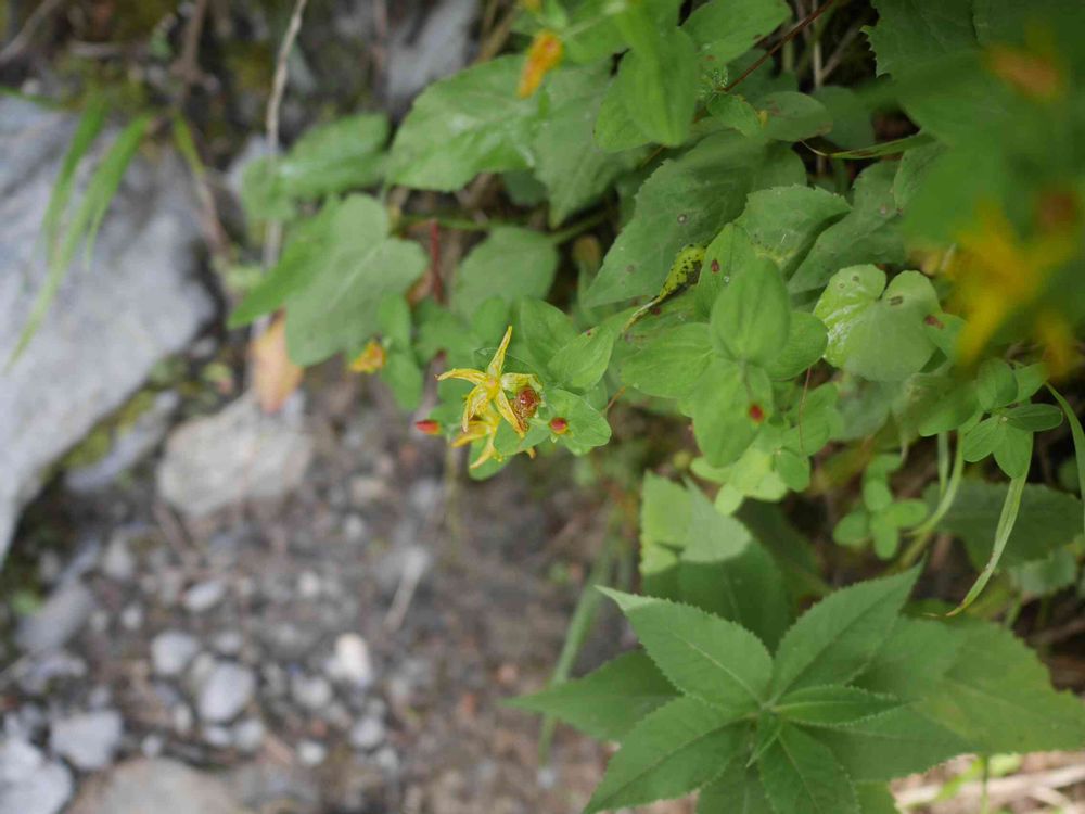 花がちょっといじけて(雨に濡れた?)いますが、シナノオトギリ